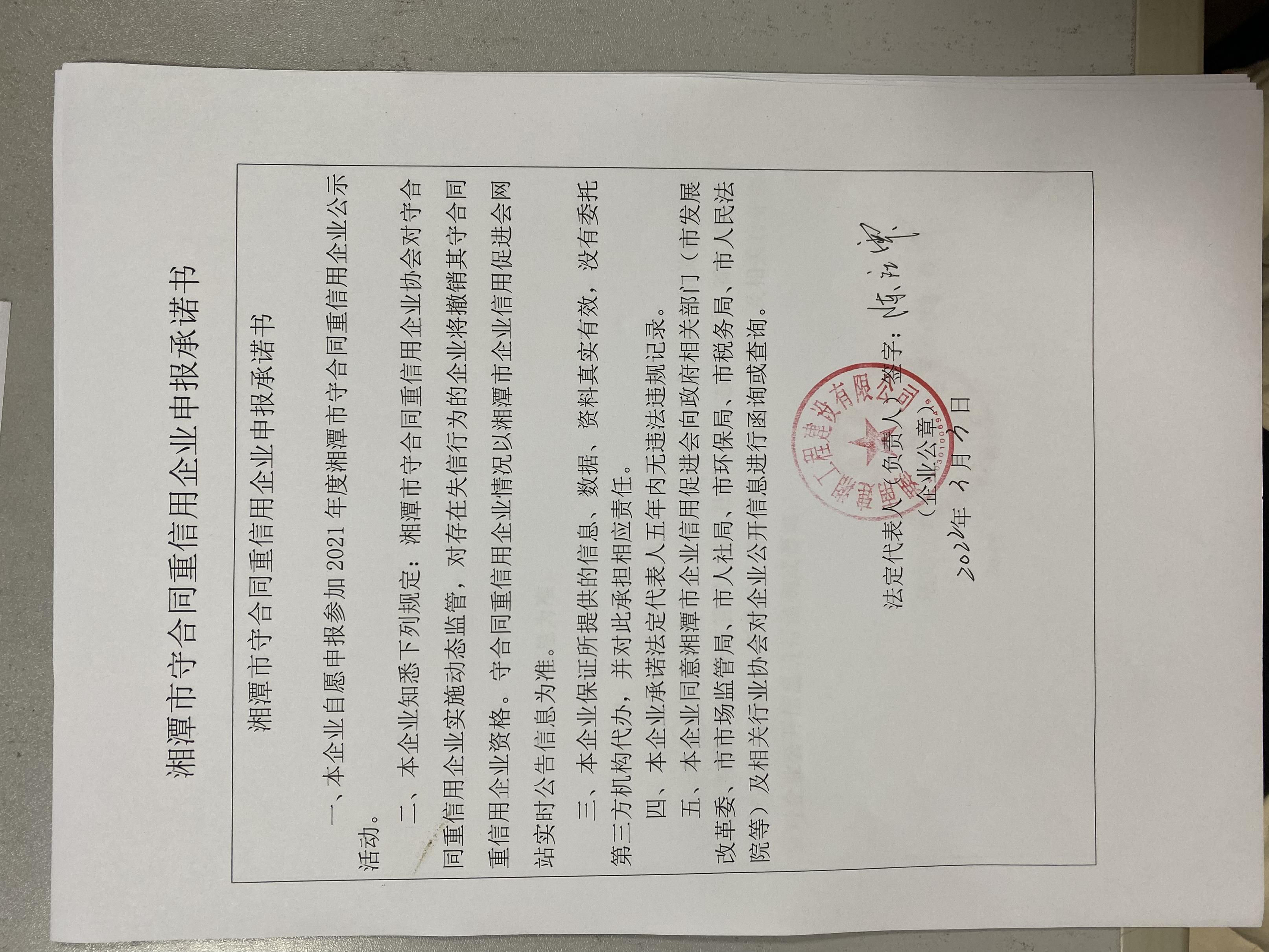 本企業(yè)根據(jù)《湘潭市守合同重信用企業(yè)申報規(guī)定》等編制 2021 年度企業(yè)信用報告書,并保證本報告書內(nèi)容真實、準確、完整。