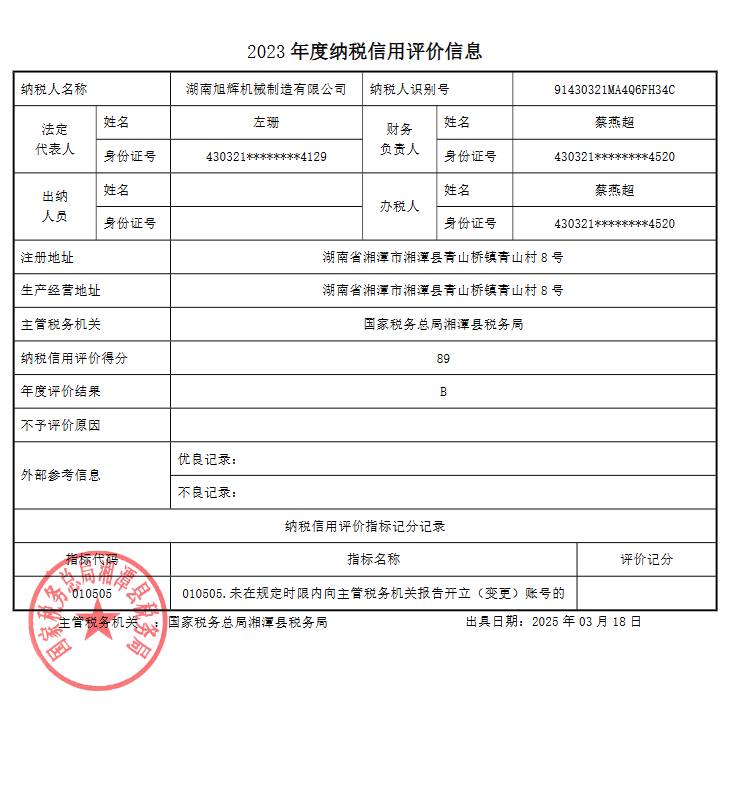 企業(yè)納稅信用等級報告: 旭輝納稅信用報告.png