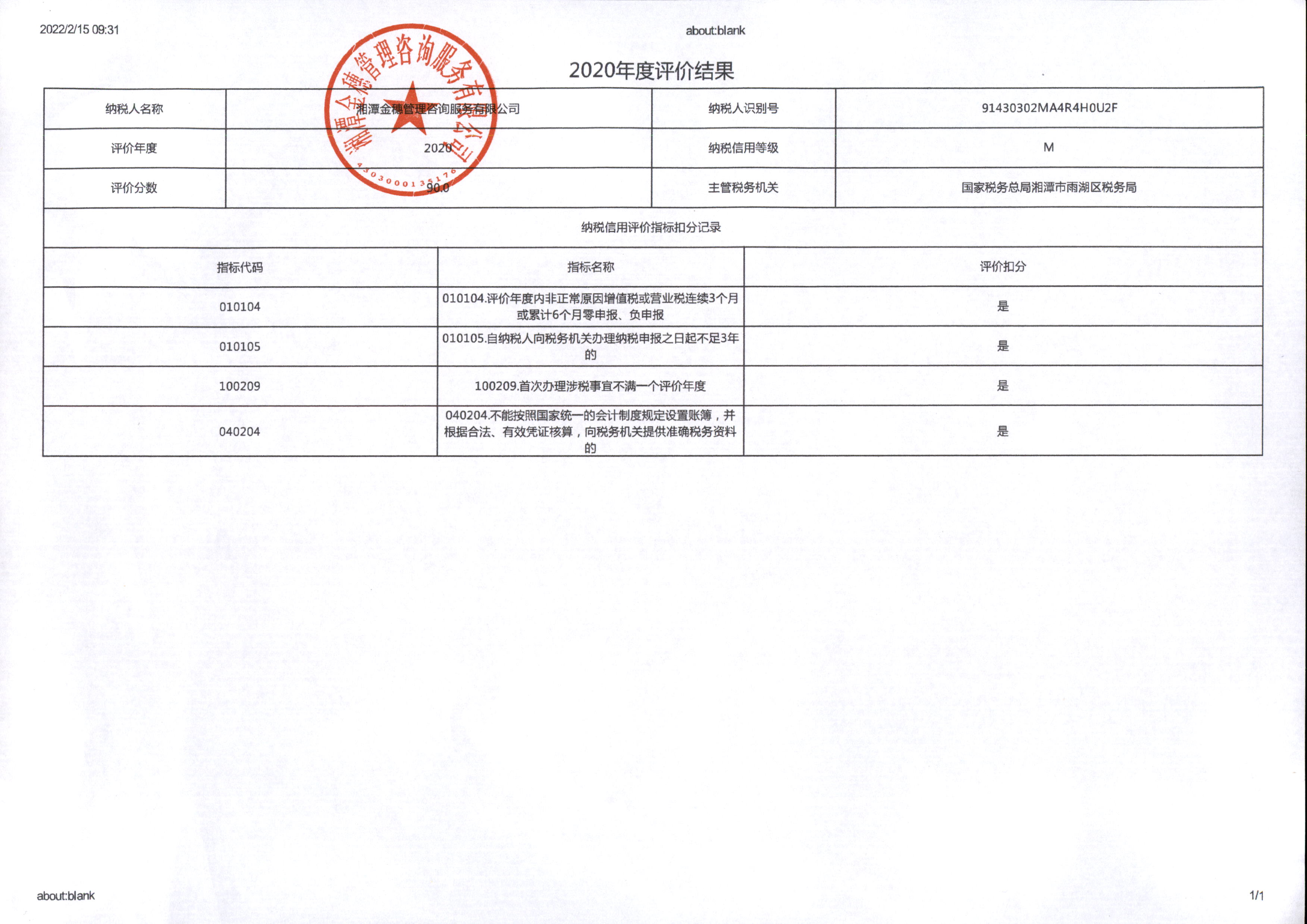 企業(yè)納稅信用等級報(bào)告: