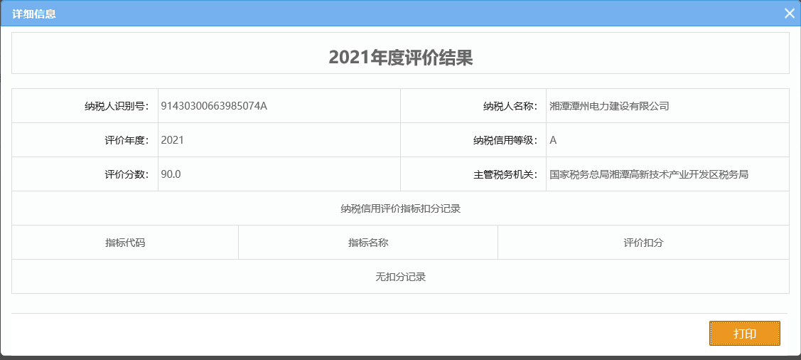企業(yè)納稅信用等級報告: